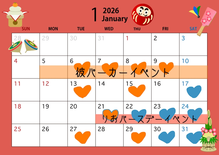 1月出勤予定🎀💞 - ☆特効薬☆りおみょん🔆🧡【Girls Land上野】 - Girls-Land-・ガールズランド - 上野のガールズバー