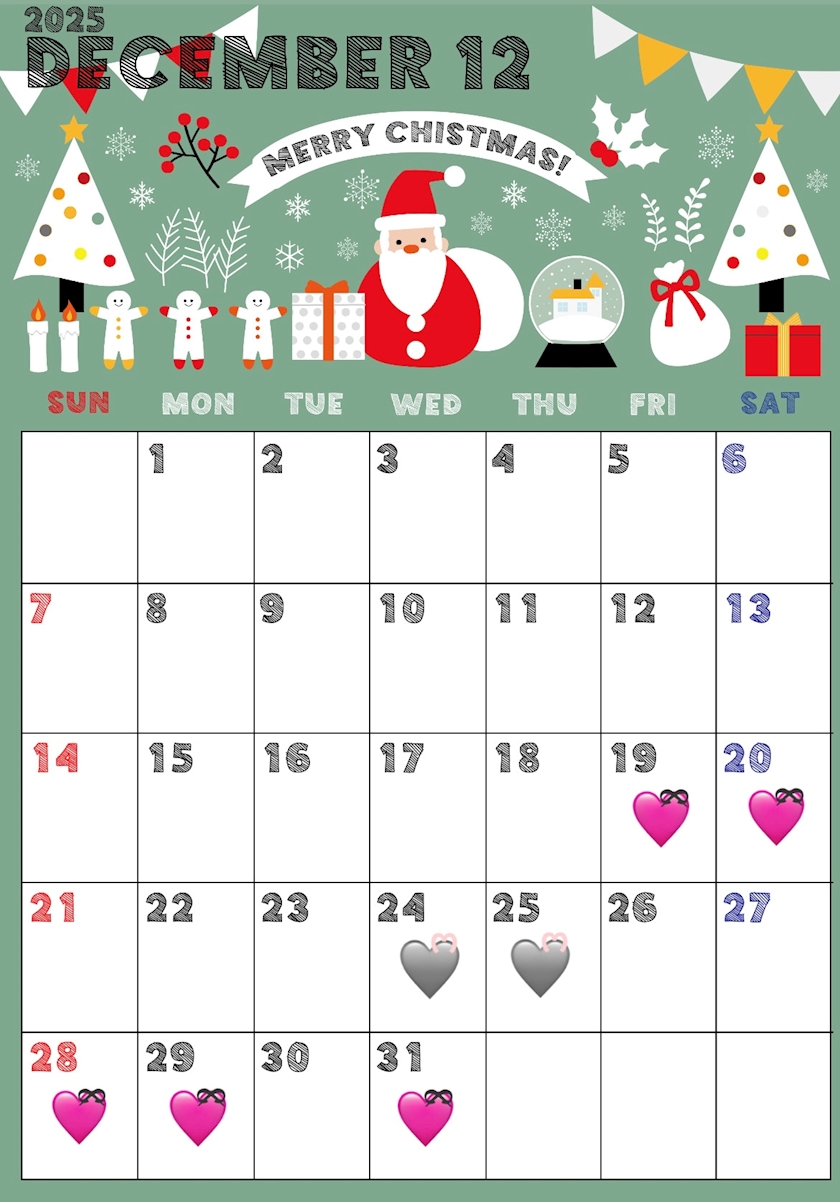 12月後半出勤予定🎄🤍