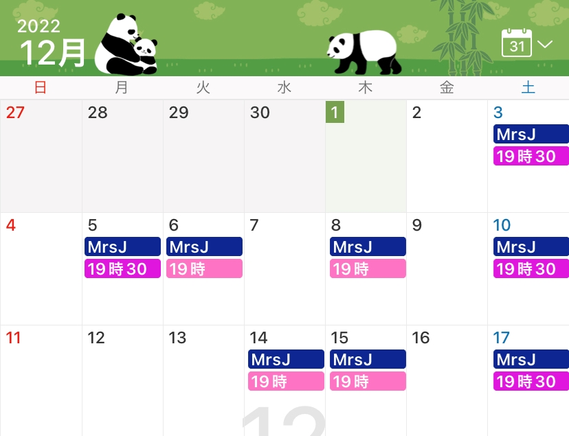 12月前半の出勤は以下の予定です。