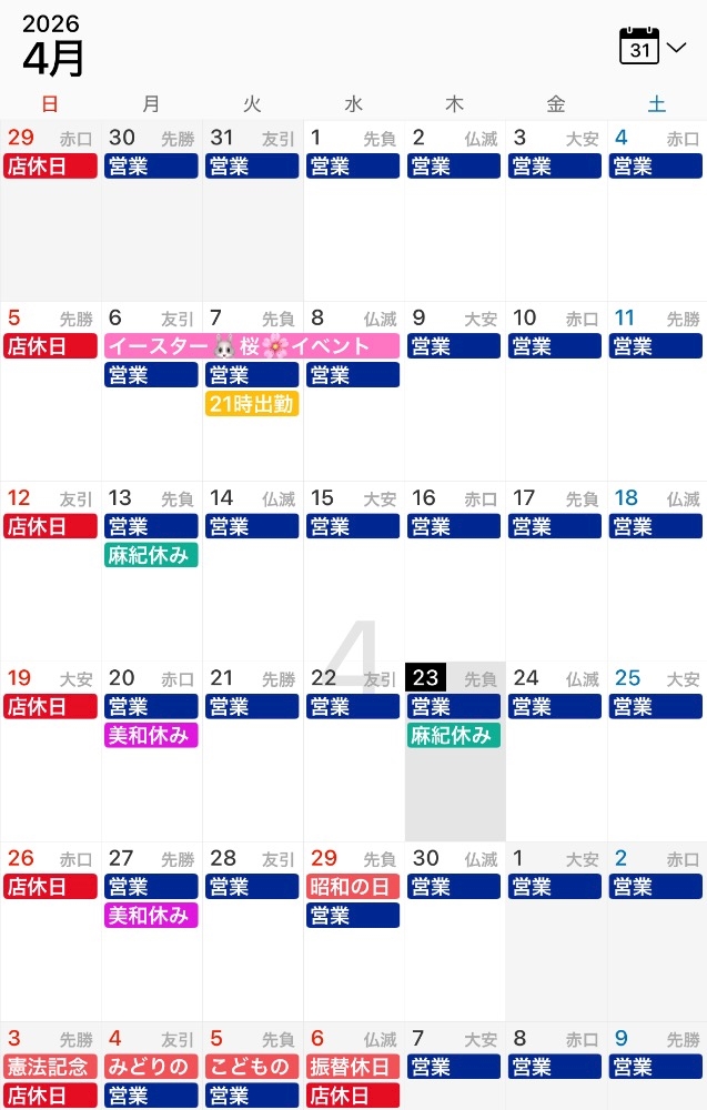 麻紀ママお休みの今日の目標は
