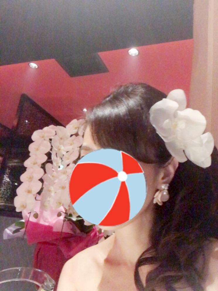 ちょうど、胡蝶蘭の髪飾りを持っていたので、頭に着けました(//∇//)