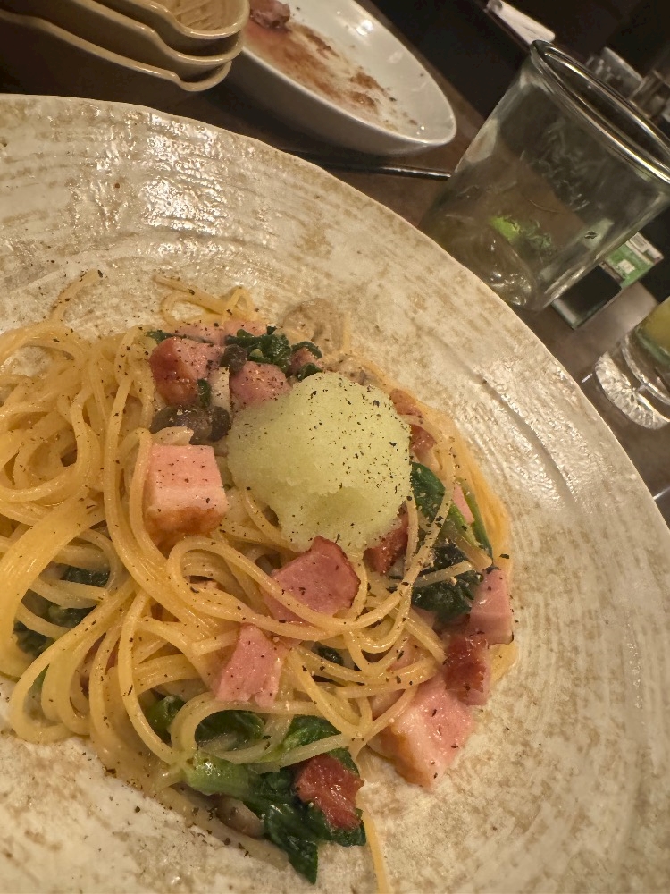 深夜に食べたパスタ(背徳感)(ニンニクやばい)