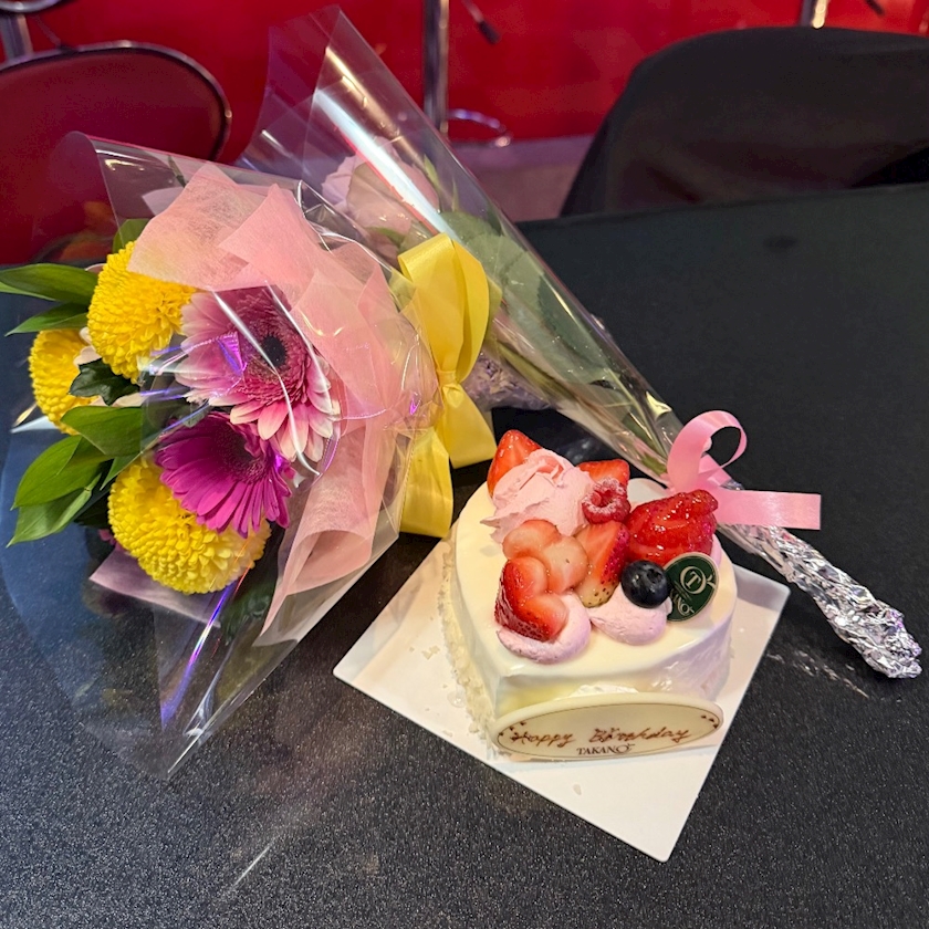 お花とケーキも用意してくれてた🥹🥹🥹