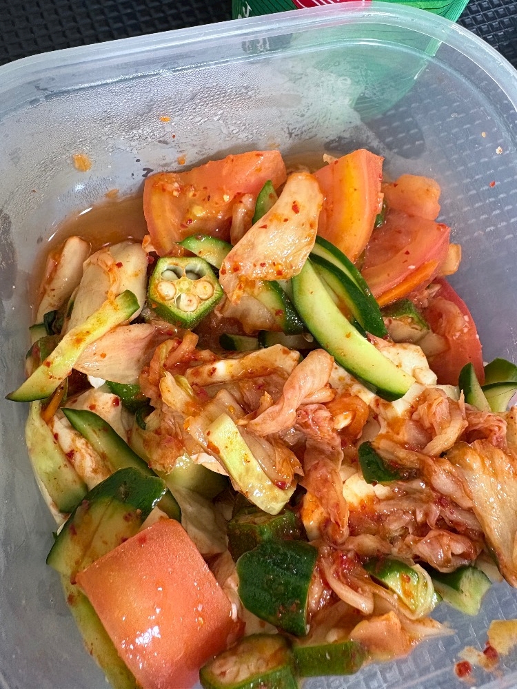 豆腐✖️キムチ✖️きゅうり✖️トマト✖️オクラ