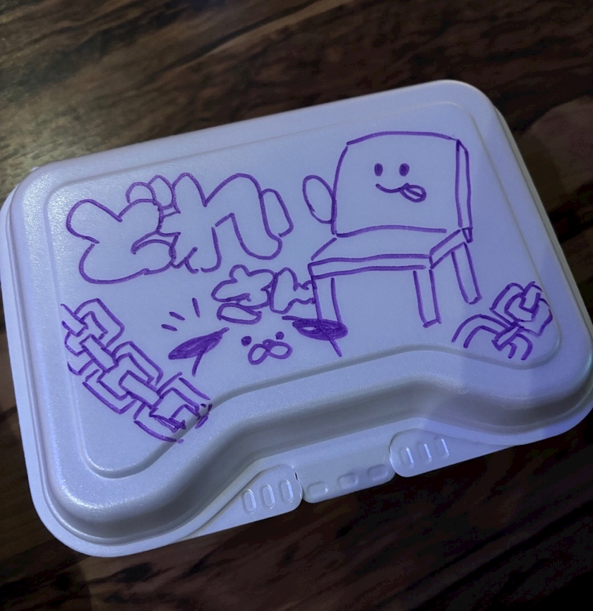 オムライス入ってるパケにお絵描きを