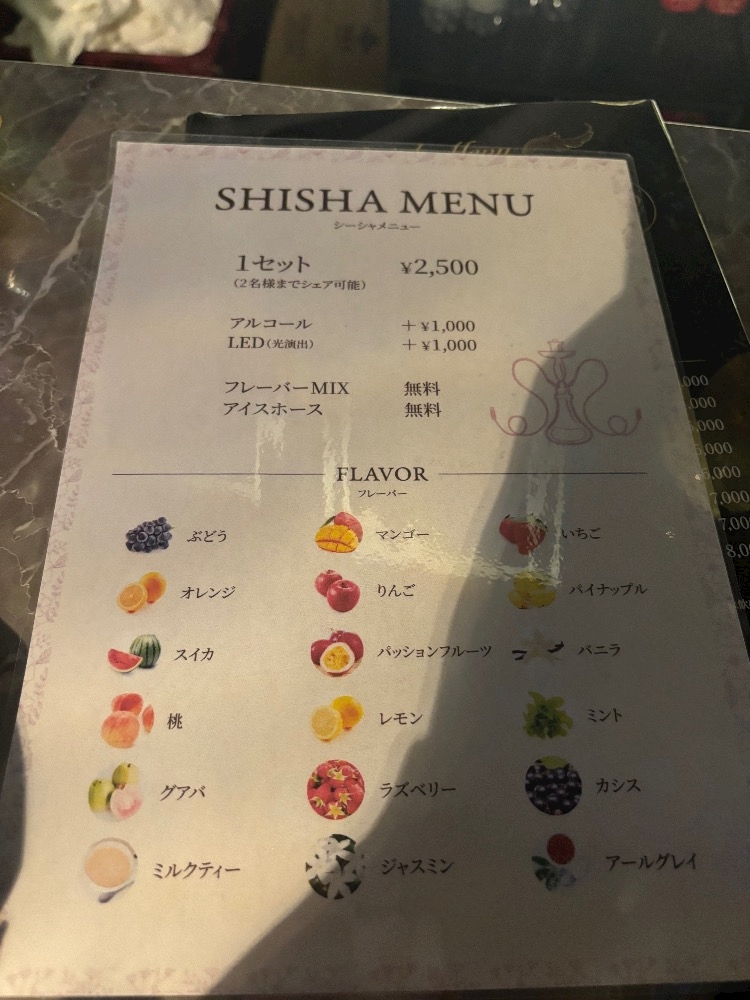 あと気付かなかったんですがシーシャメニューあったから