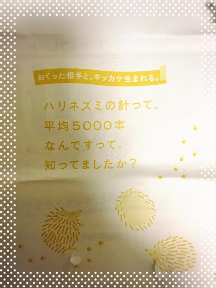 メッセージは『ハリネズミの針って平均5000本なんですって。知ってましたか?』