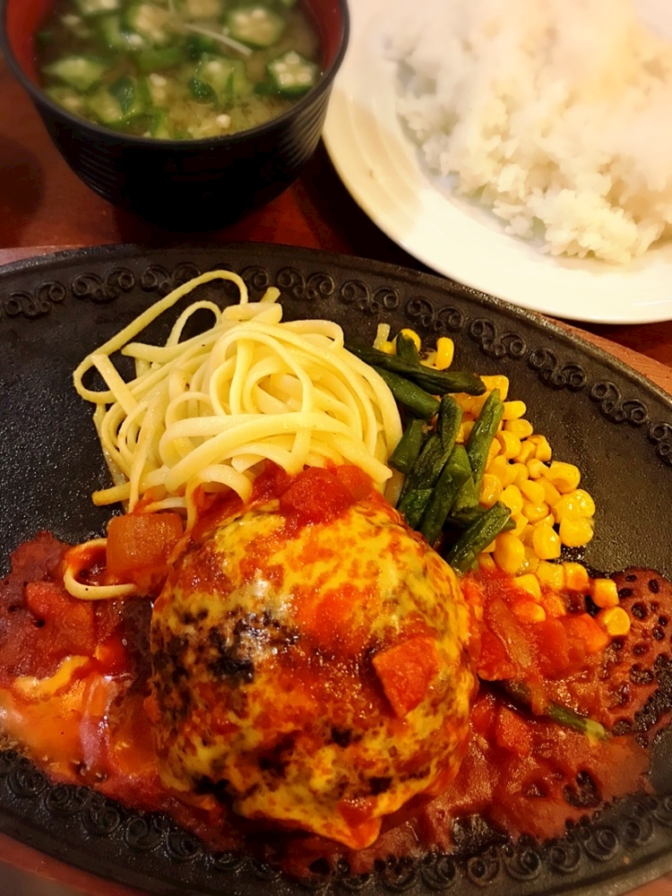 ジューシーなハンバーグにトマトソースがマッチしてて美味しかったぁ(o'ч'o)♡
