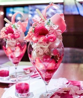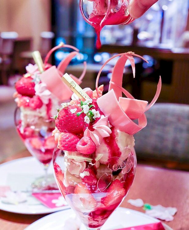 日比谷、梅田、神戸にあるお店「デリーモ」の、苺やラズベリー、グリオットチェリーにピスタチオを合わせた桜の時期限定のパフェ「サクラブロッサム」✨