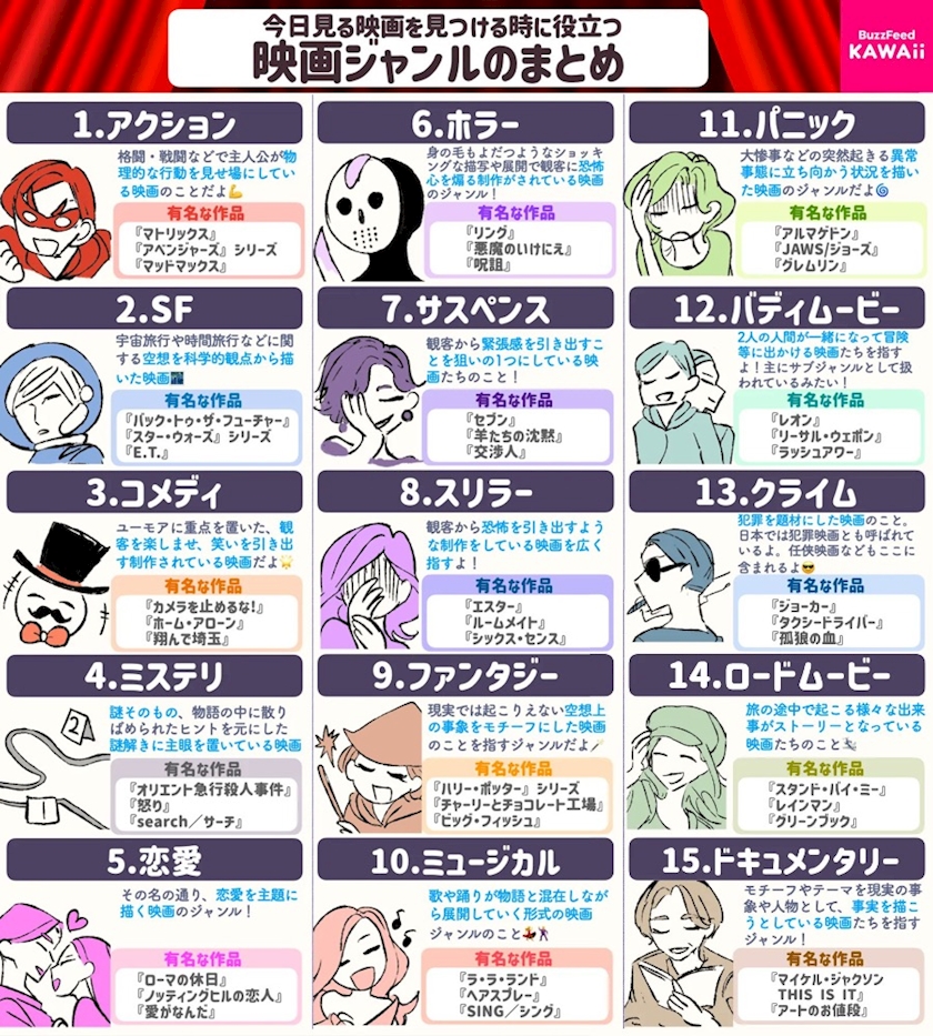 映画ジャンルについて、用語と分類をまとめたよ🎬