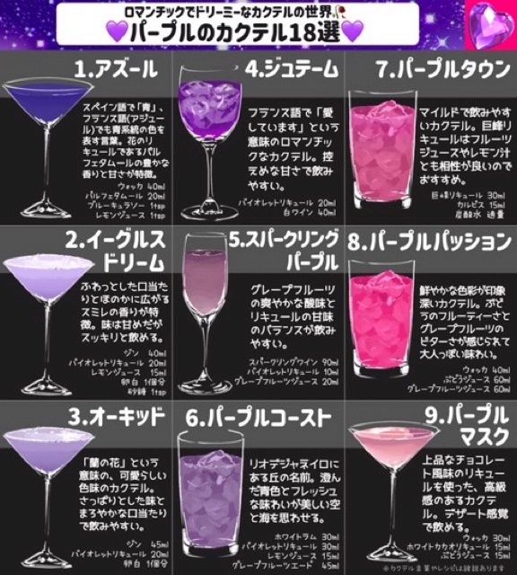 吸い込まれるような紫色のカクテルをまとめました💜