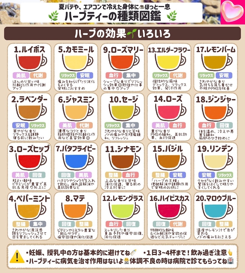 【ハーブティーの種類&効果】をまとめました 🌿
