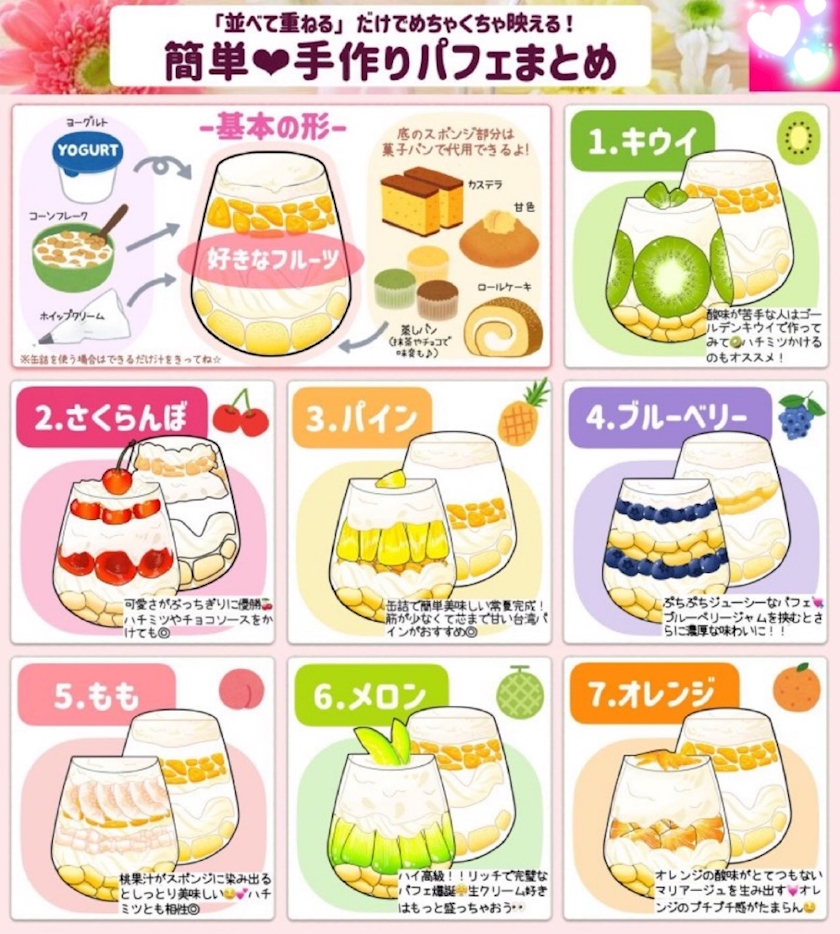 冷凍や缶詰、カットフルーツで作れる!週末に作りたい【簡単パフェ】だよ〜 🫐 🍑 🍒