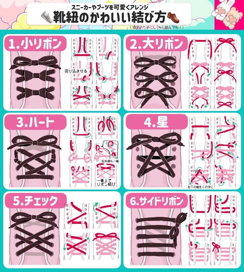 靴紐のかわいい結び方6選です 🎀