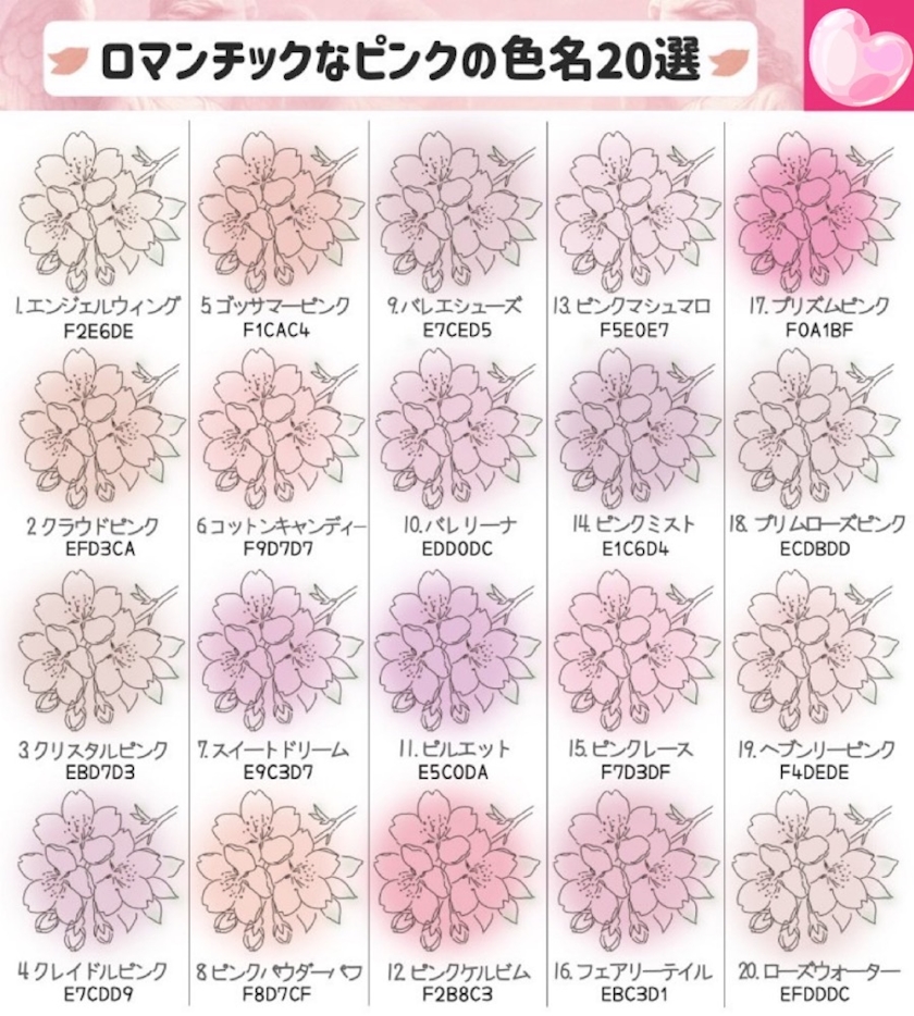 桜色を表現できるピンクの色名を20個まとめたよ🌸💕