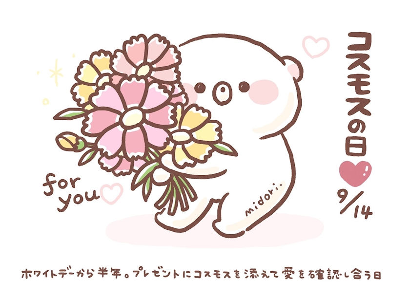 プレゼントにコスモスを添えて愛を確認し合う日。