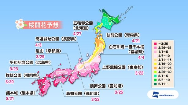 桜の開花予想です❀.*・゚✿゜:。*