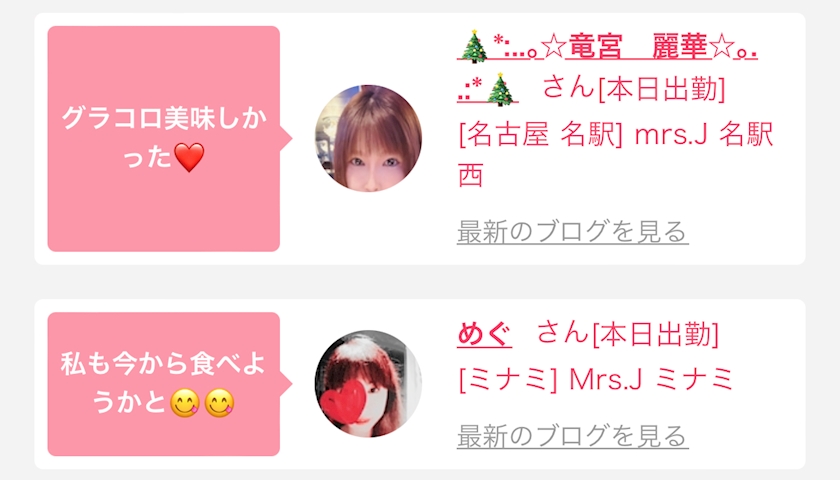👗本日の出勤情報👠