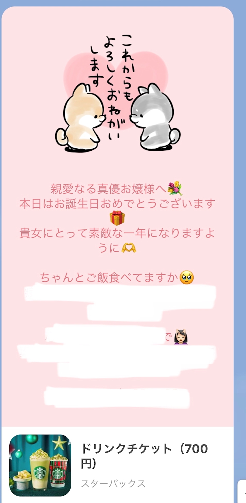 メッセージの内容がとても優しくて