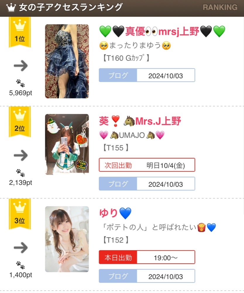 👗本日の出勤情報👠