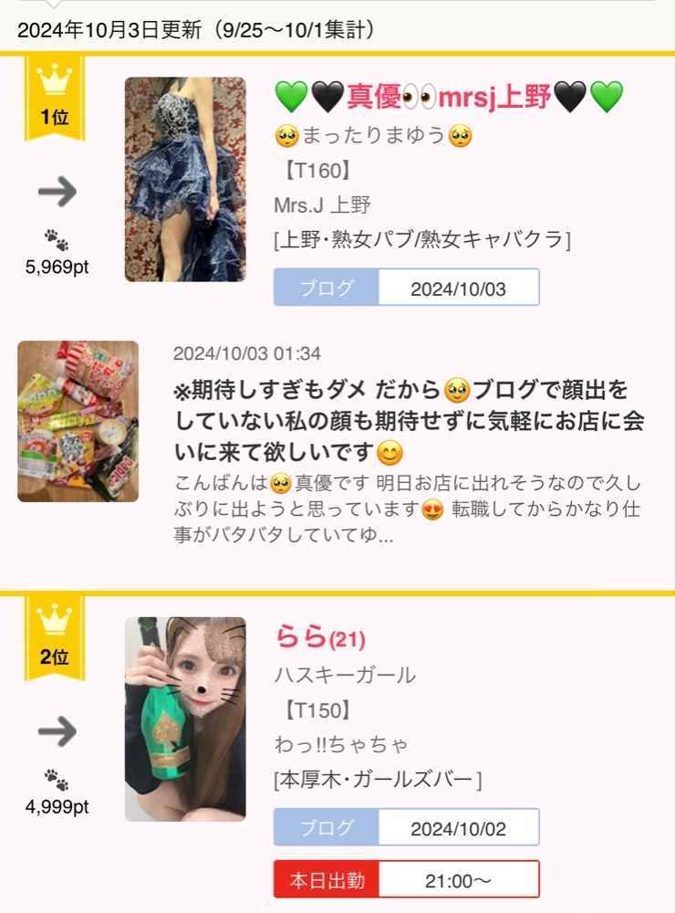 おはようございます🤩って、、今ですが、、起きてました🤣そしてランキングが🐌💞ゆっくりと、、🐌今日久しぶり出勤します🤣よろしくお願いします - 💚🖤真優👀mrsj上野🖤💚 - Mrs.J 上野・ミセスジェイ - 上野の熟女パブ/熟女キャバクラ
