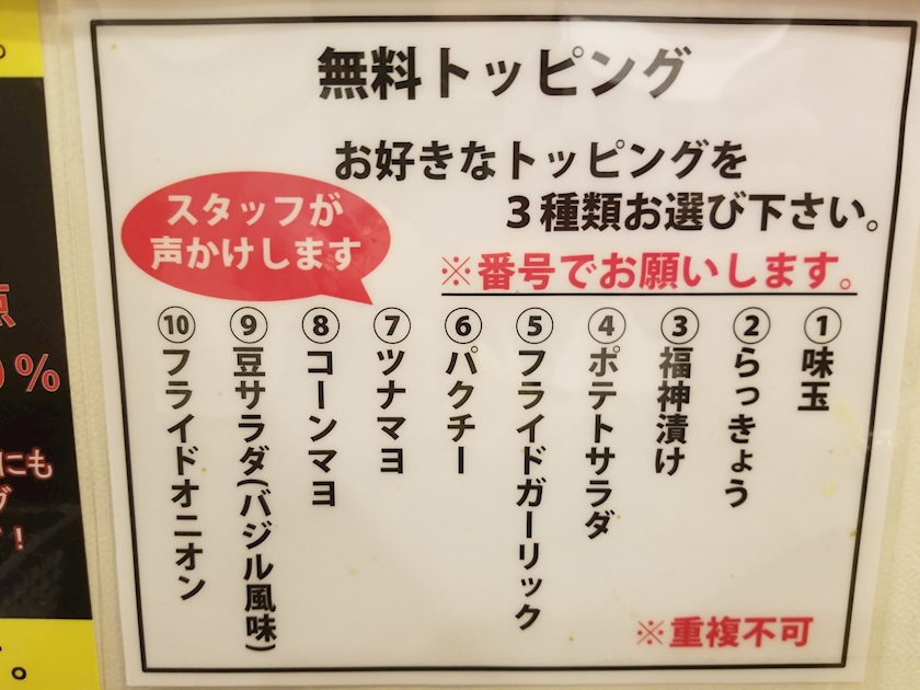 トッピングを10種類の中から