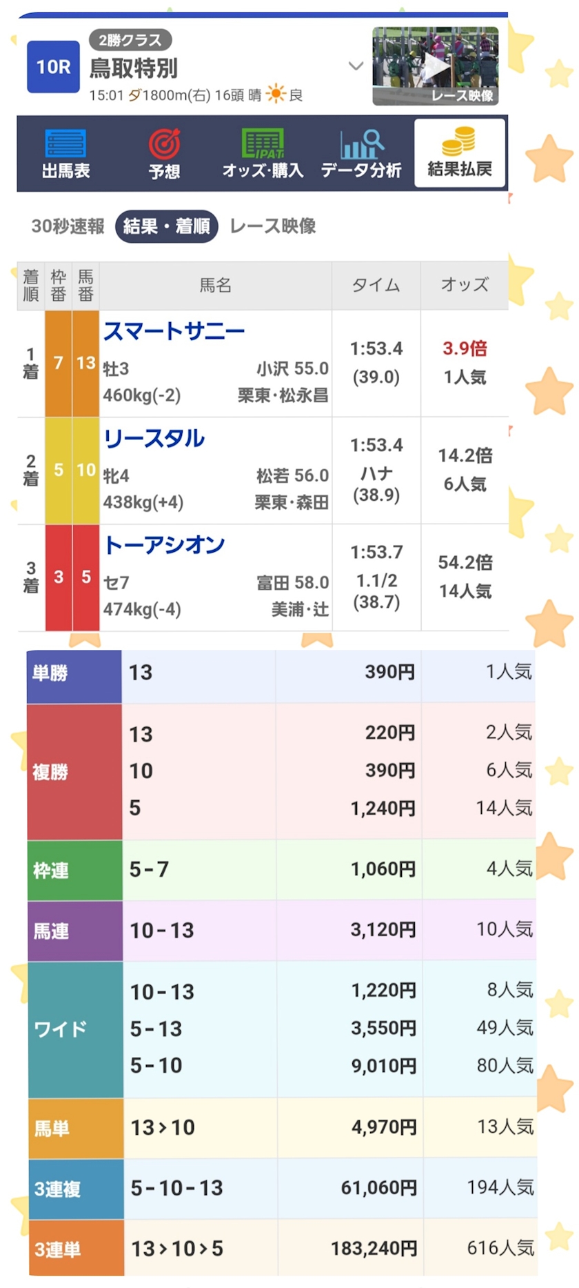 人気ない中、3着!!!頑張ったね🥰