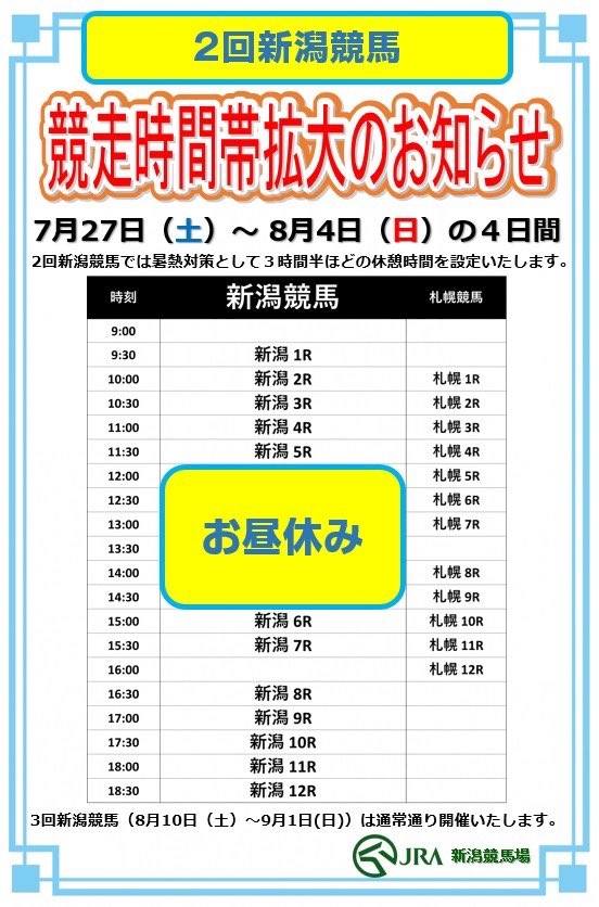 メインレースは新潟7レースなので皆様、間違いないようにです(・ω・`人)