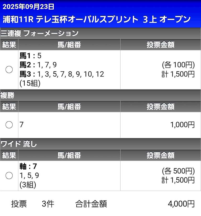 ちなみに馬券は