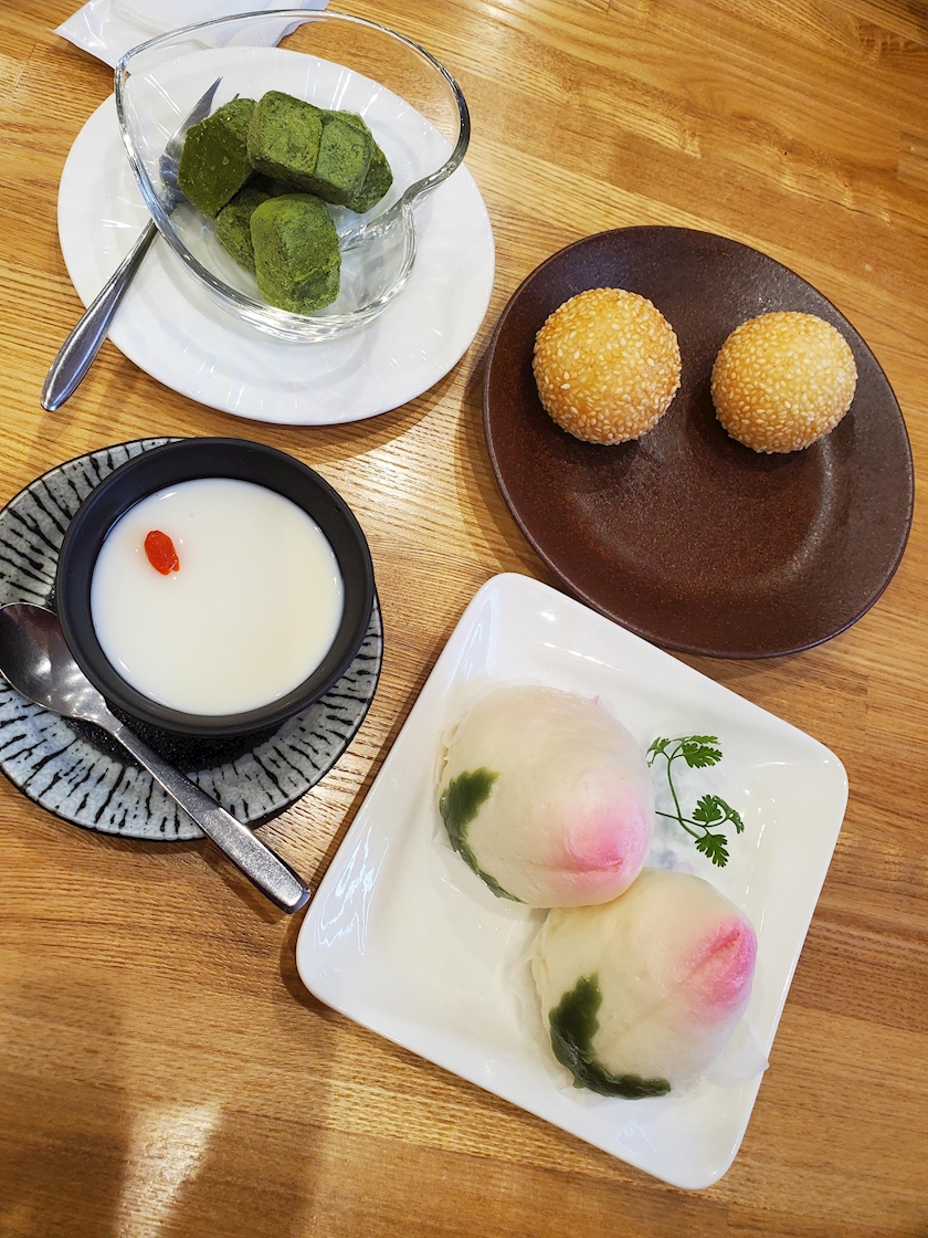 桃饅頭・ごま団子・杏仁豆腐・抹茶アイス