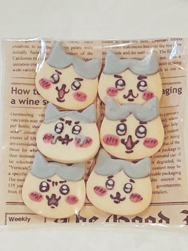 はなこさんがちいかわの可愛さを知りたいってなって、すごいアニメとかみて勉強したら可愛さにきづいちゃって、100均でくまさんと、ねこさんのクッキー型見つけちゃったから、これは作るしかないって思って作ったーー