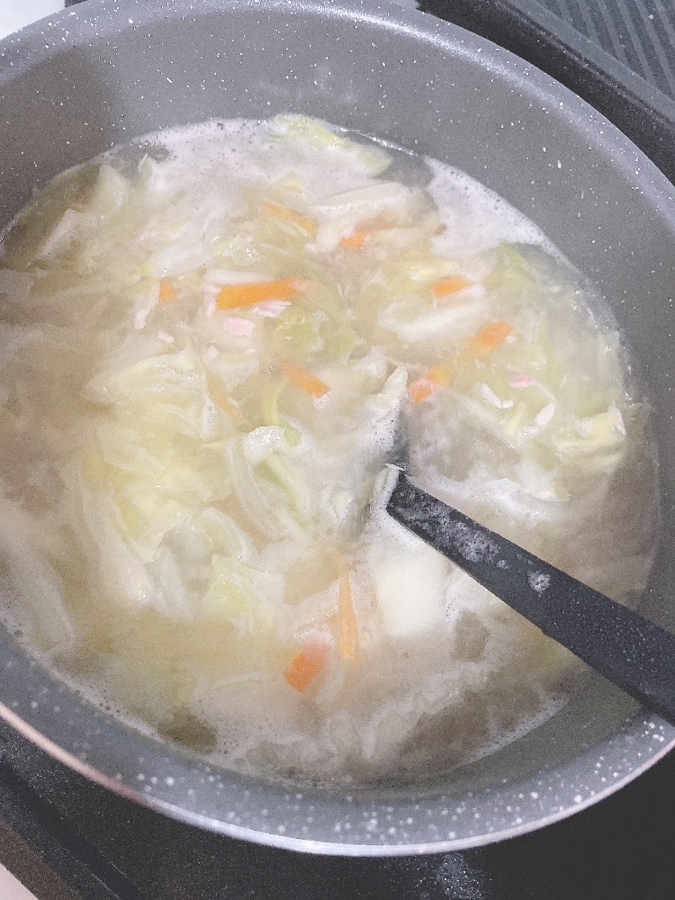今日は野菜スープとサラダチキン
