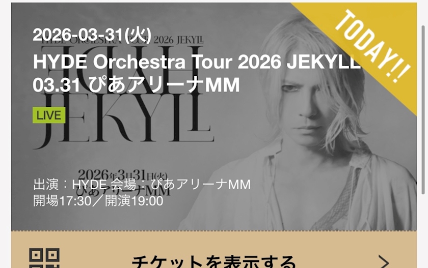 HYDEコンサートは明日が最終日なのですが用事が入って行けなくなってしまいました💦