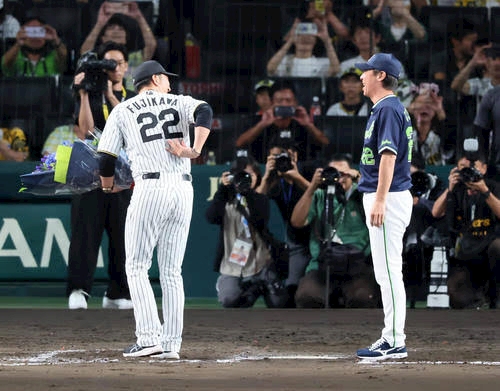 藤川監督が 高津監督と同じ背番号を