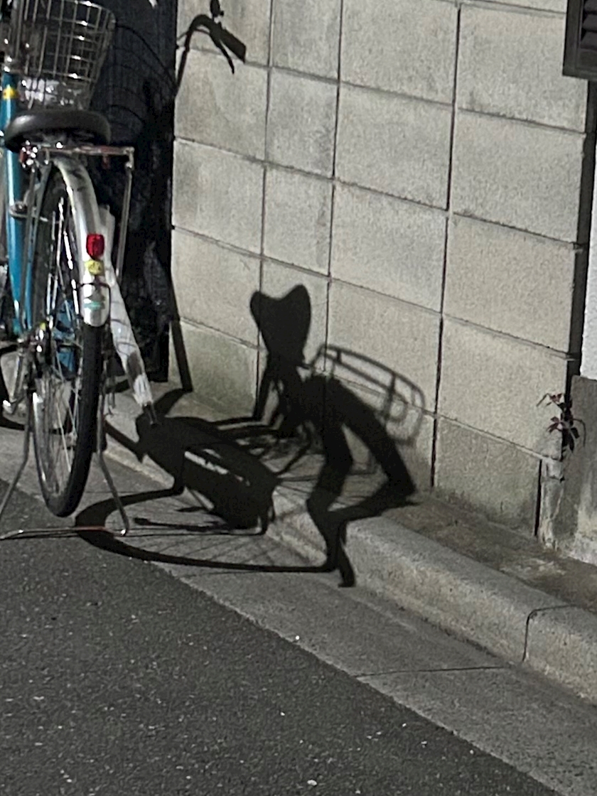 この前歩いてたら自転車の影がにゃんこみたいな形でした