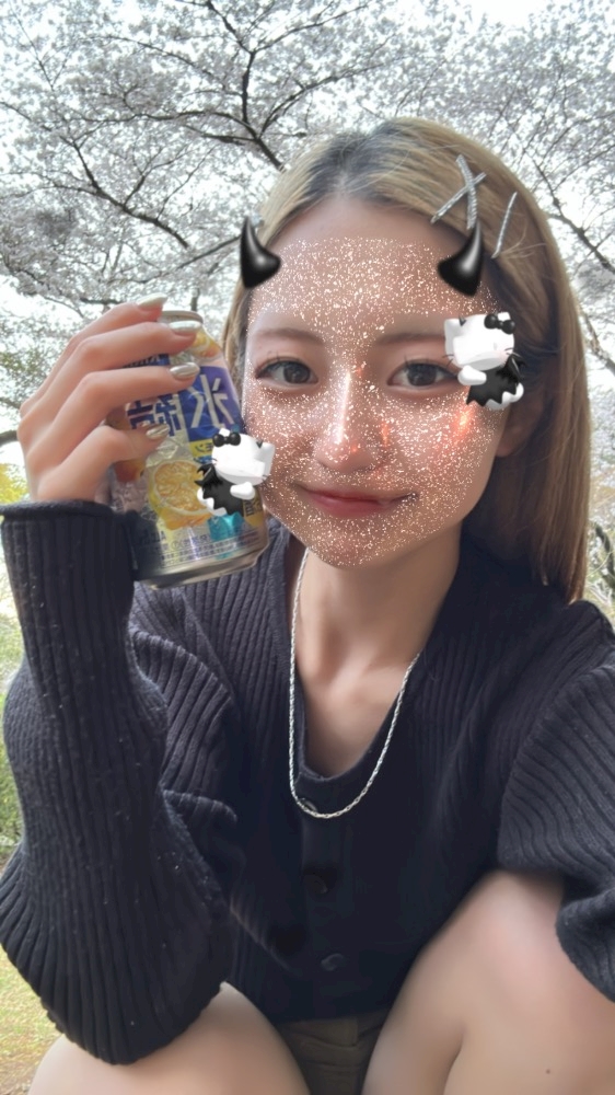 私は桜の下でお酒飲みながら