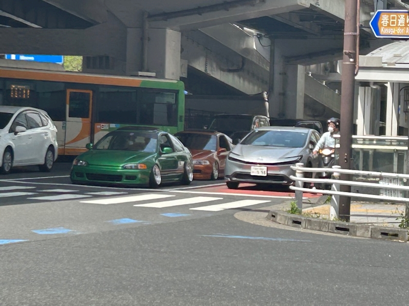 ある日の昭和通りの交差点を撮ったものなのですが、ナンバープレートの無い車が公道を走っている…。