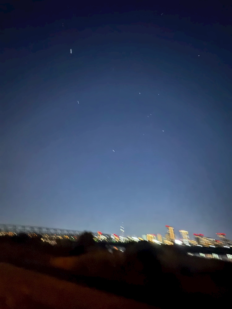 寝袋を持って土手で寝転びながら星を見ている達人がいました🤩