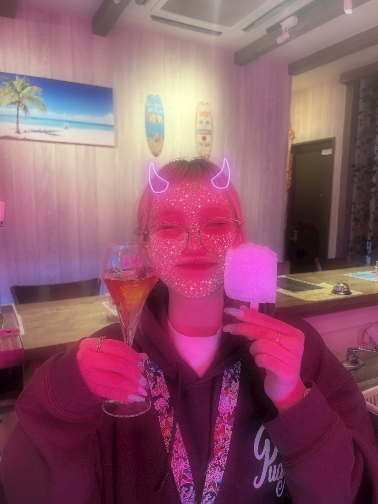 お酒とアイス持ってにこやかなすいを添えときます✌️