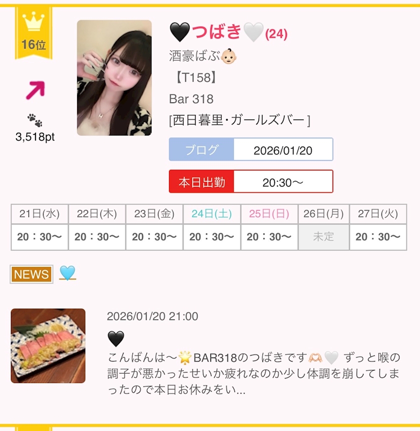 🤍 - 🖤つばき🤍 - Bar 318・サンイチハチ - 西日暮里のガールズバー