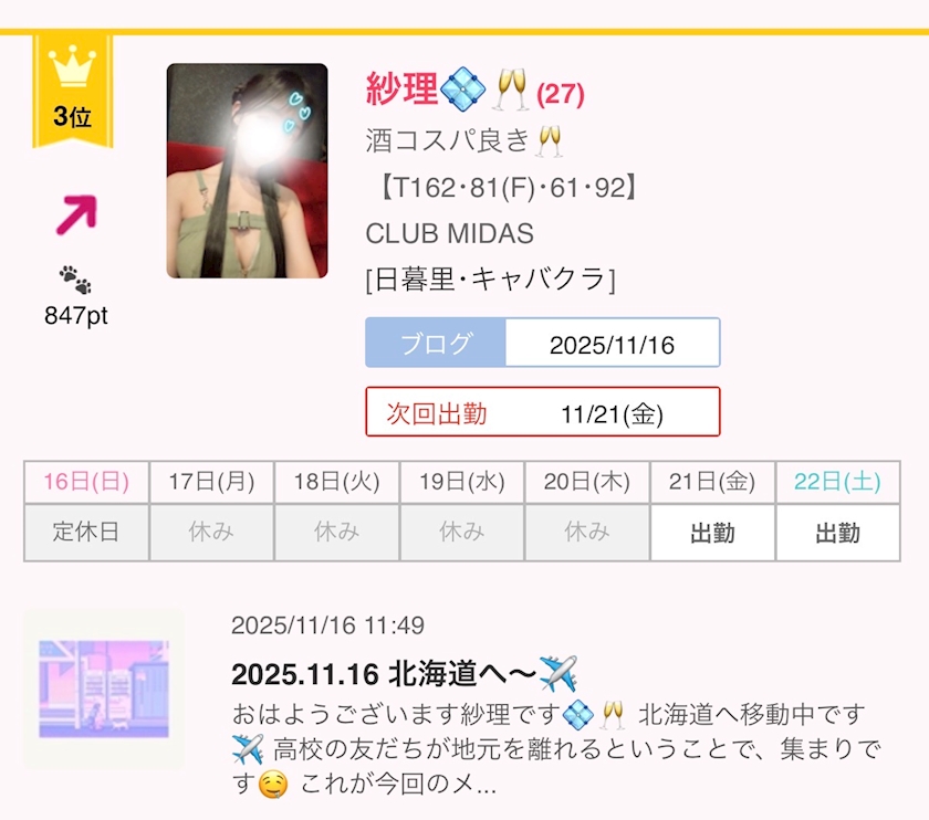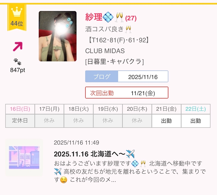 2025.11.16 ありがとう💠 - 紗理💠🥂 - CLUB MIDAS・ミダス - 日暮里のキャバクラ
