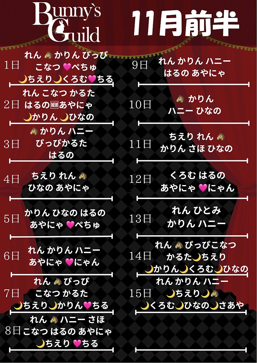 🐰11月前半 出勤予定🐰 - シーシャバニー - Bunny's Guild・バニーズギルド - 秋葉原のコンカフェ