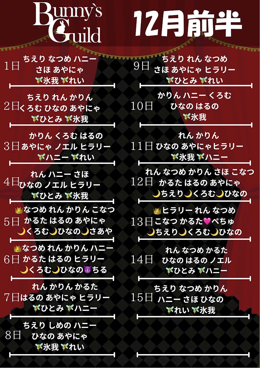 🎀12月前半 出勤予定🎀 - シーシャバニー - Bunny's Guild・バニーズギルド - 秋葉原のコンカフェ