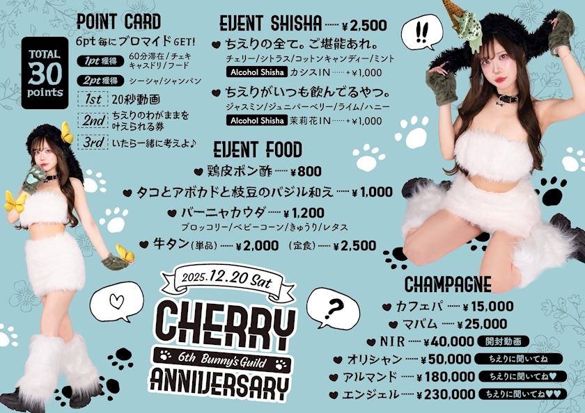 🍒ちえり姫 周年イベント明日開催🍒 - シーシャバニー - Bunny's Guild・バニーズギルド - 秋葉原のコンカフェ