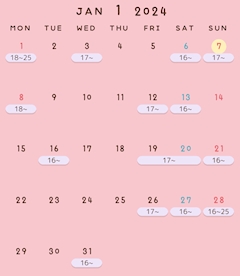 | 16:00~翌1:00 |