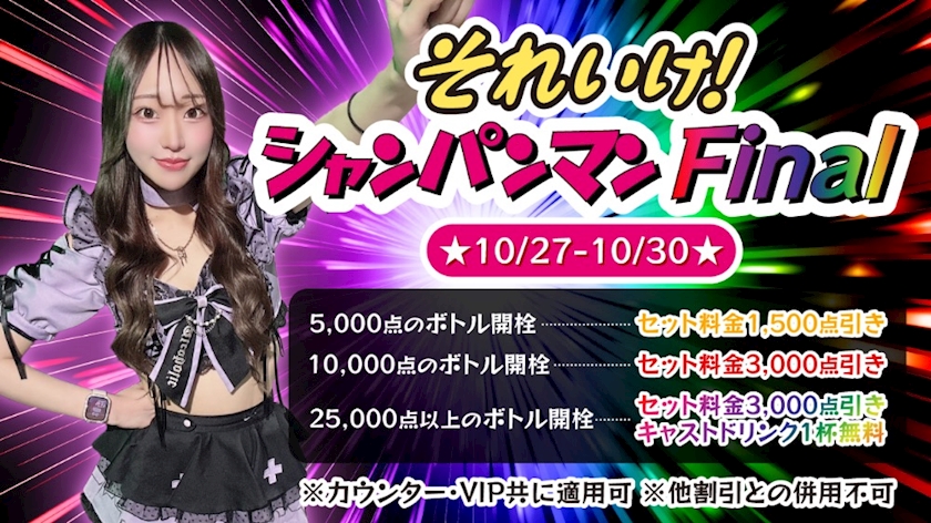 10000点のボトル開栓▶︎セット料金3000点引き