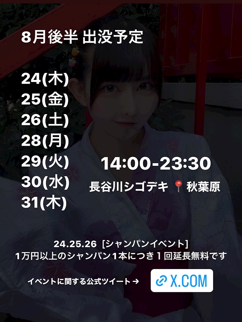 次回は 8/24(木)14:00-23:30 オーラスです🔥