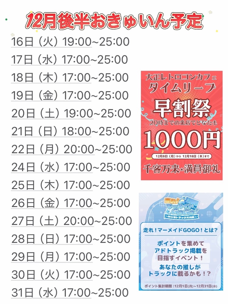 12月後半予定 - ぽちゃ▼· . ·▼ - タイムリープ - 秋葉原のコンカフェ