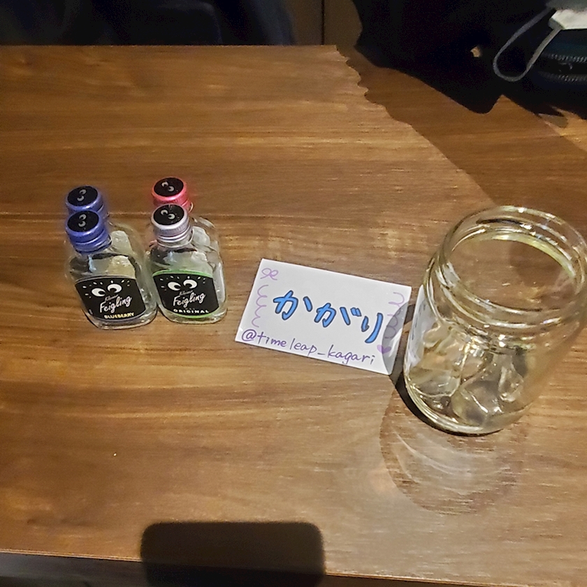 『未来へ飛ぶお酒』(ショット)を渡すと