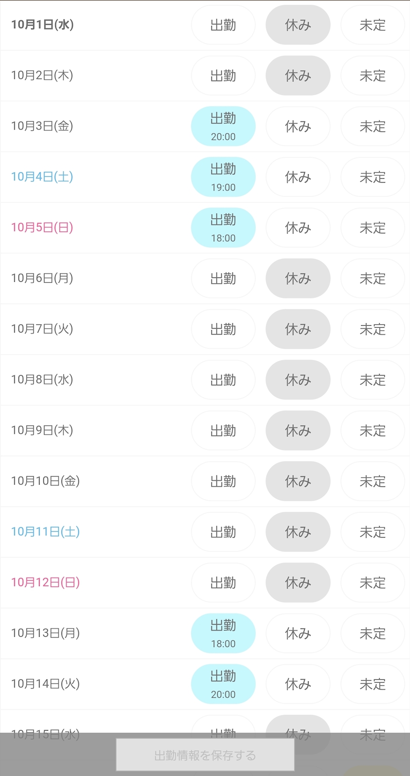 10月前半お給仕予定